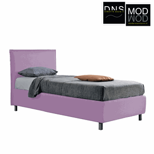 È un letto la cui testata è realizzata con due cuscinoni decorativi fissati con pratici inserti di velcro adesivo che ne permette una comoda e facile rimozione.