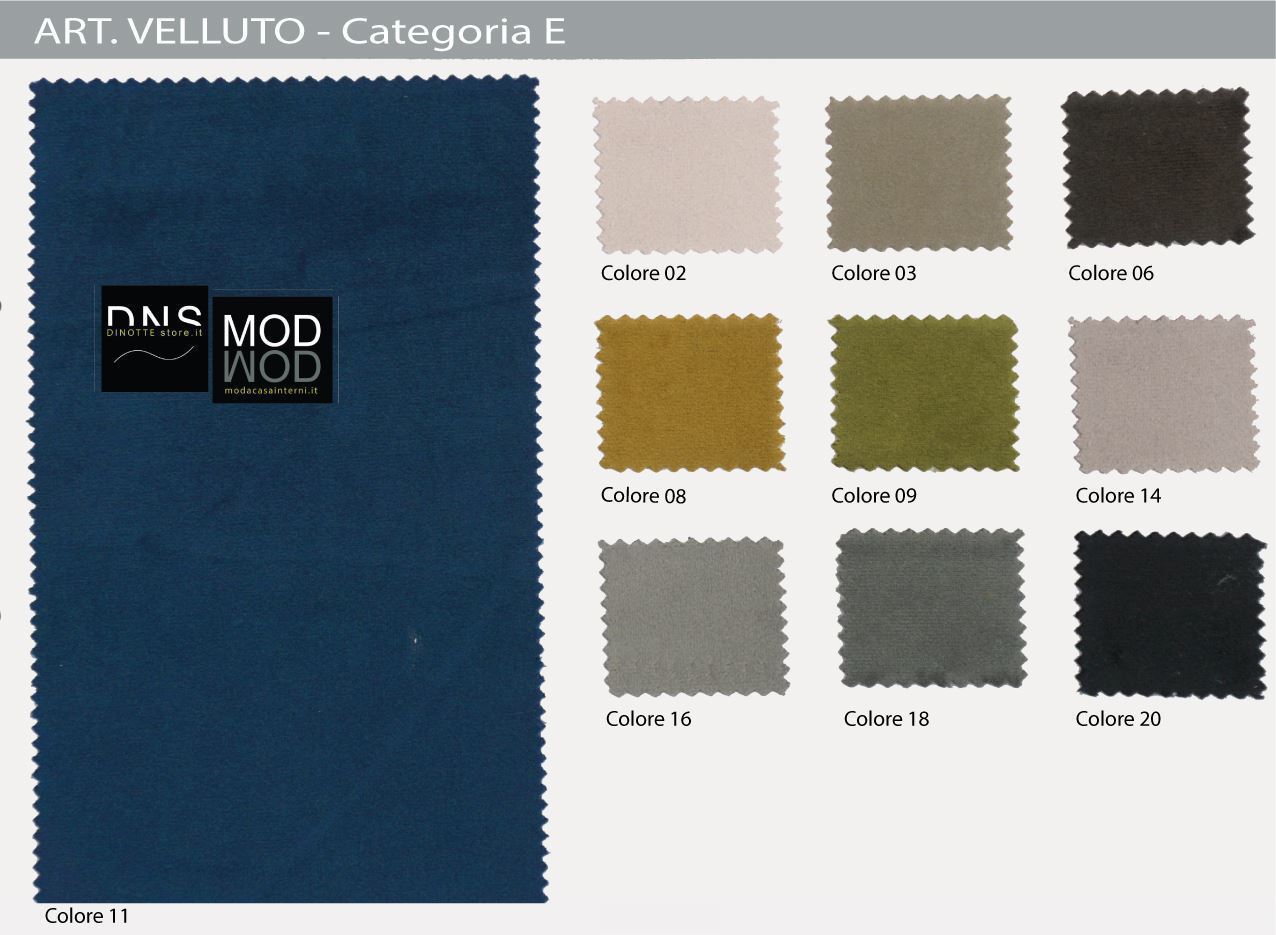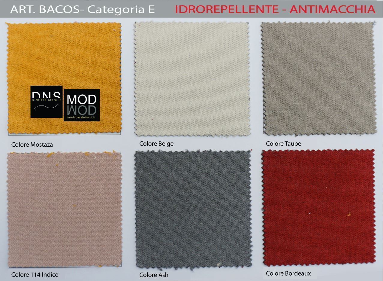 Telaio in pannelli di particelle di legno da 18 mm e MDF da 8mm, imbottitura in poliuretano indeformabile D28 e fibra di dacron nei cuscinoni.