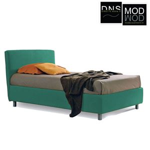 Letto imbottito Emma nella versione con contenitore o corredato di rete. È un letto dalla forma morbida e lineare che si integra perfettamente negli ambienti notte dal gusto moderno e giovane. La testata si caratterizza per il cordoncino rivestito in tinta o a contrasto applicato lungo tutto il perimetro.